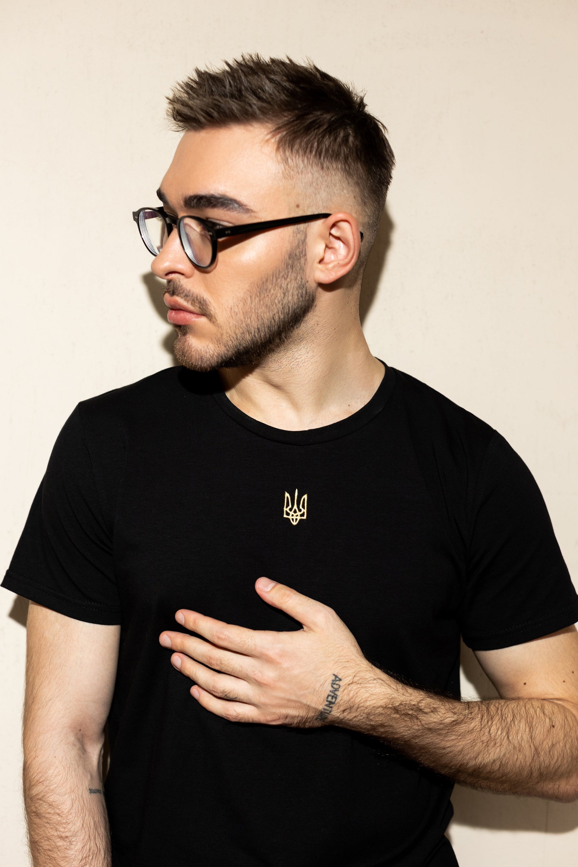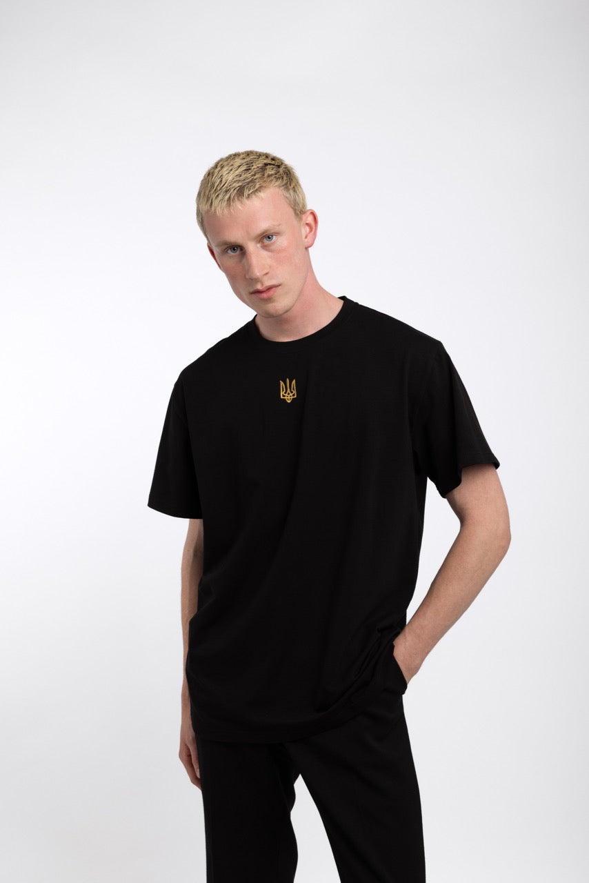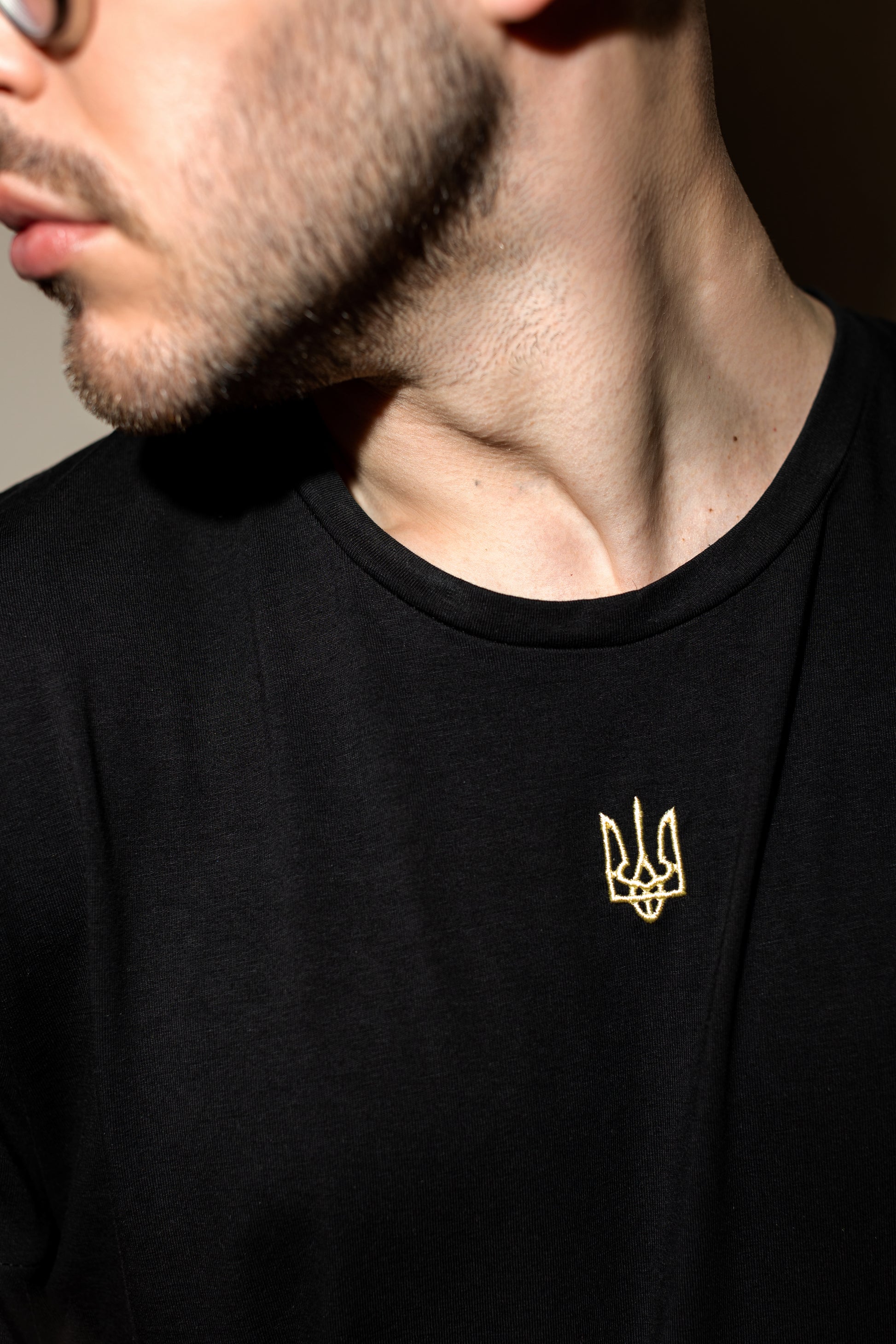 🏷️ Black t-shirt with golden silk embroidery of the Tryzub