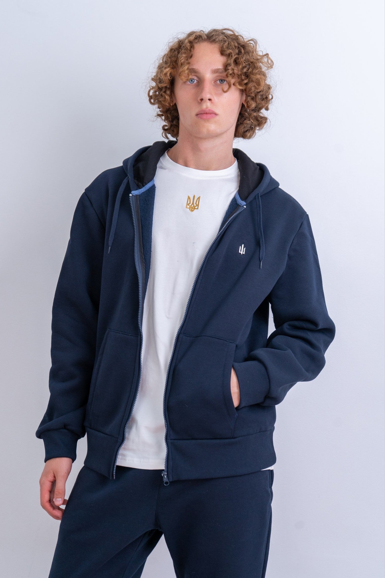 🏷️ Original blue Zip-Up hoodie with silver color Tryzub